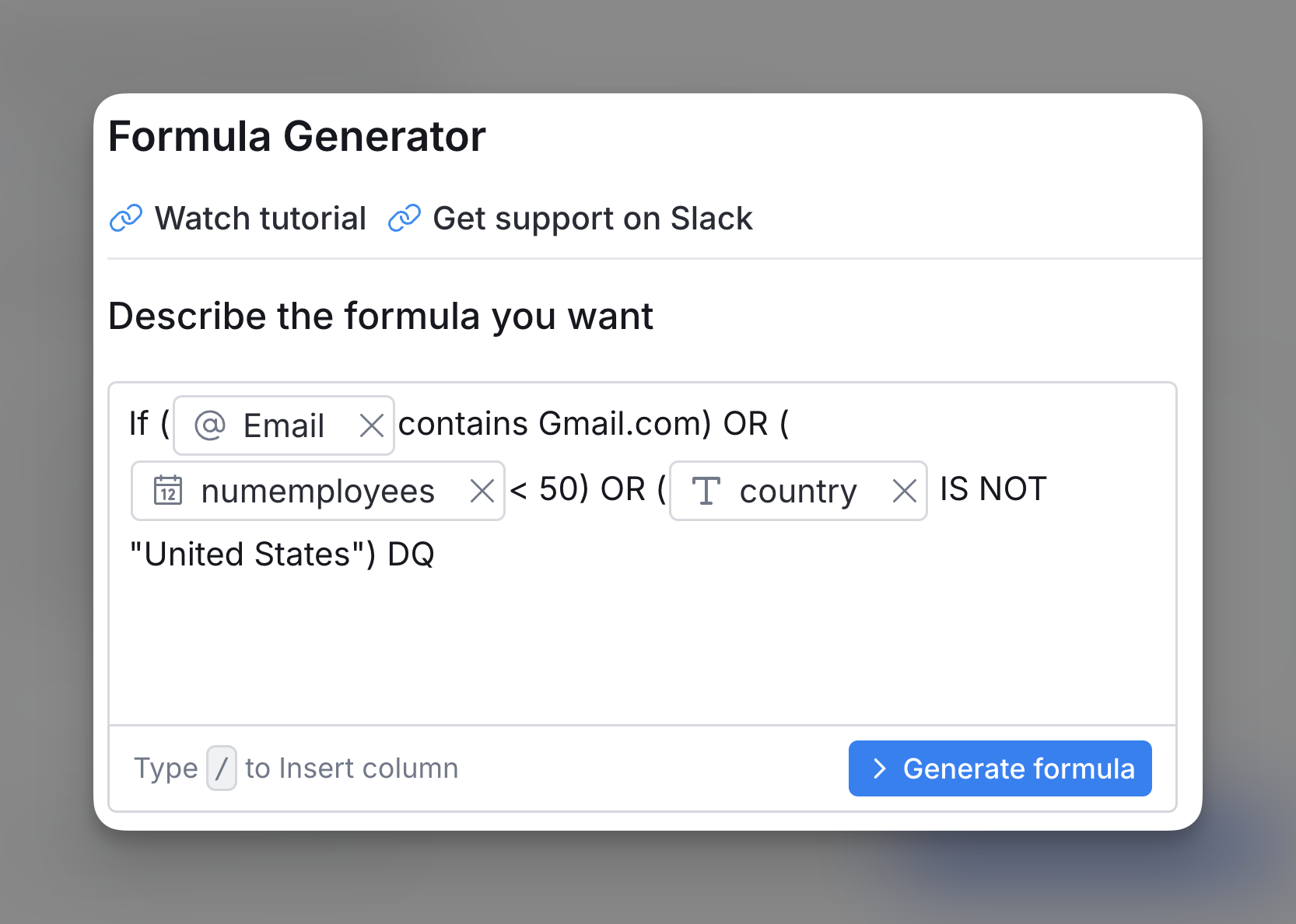 Use the Formula Generator to create a formula that matches your scoring criteria.