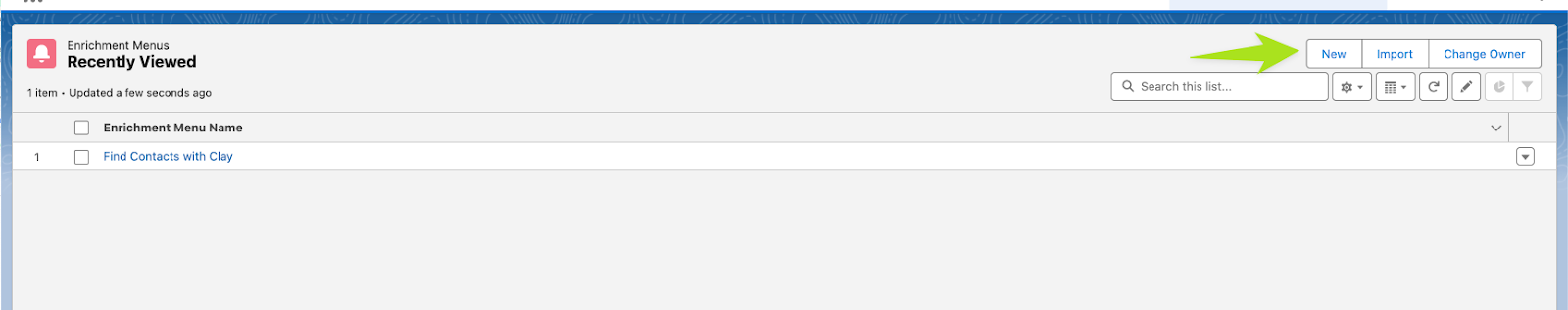 You’re done! Head to any object where you’ve enabled the menu and you’ll now see the button which will automatically push that record to your Clay table:)